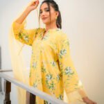 A perfect blend of summer and spring colours. A cool yellow to avoid the scorching heat style with organza on sleeves to make it additionally beautiful.⠀