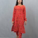 The red printed set featuring a stunning lace neckline and chic chunri sleeves. Perfectly paired with straight trousers for an effortlessly stylish look!